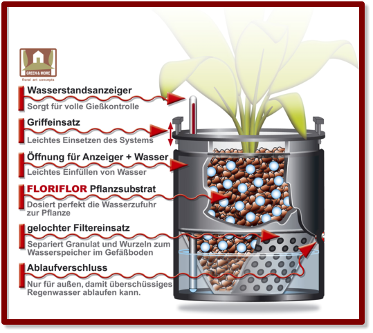 für Innen- und Außenbegrünung. Es handelt sich